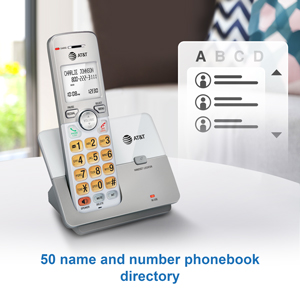 [Phonebook Directory] – Easily store 50 name and numbers in the phonebook directory to dial frequently called numbers quickly.