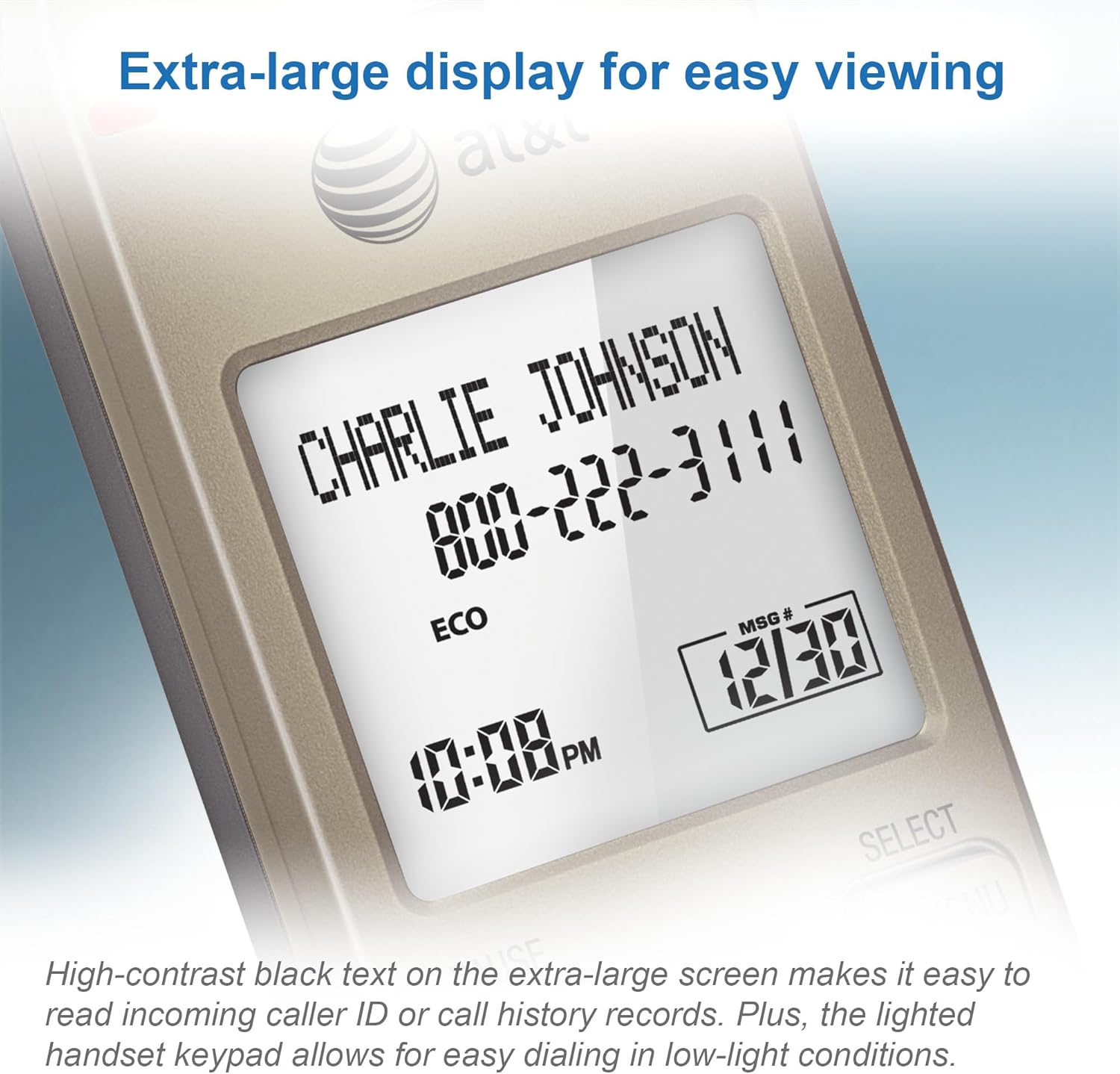 [Backlit Screen & Lighted Keypad] High-contrast text on the white backlit screen makes it easy to read incoming caller ID or call history records. Plus, the lighted handset keypad allows for easy dialing in low-light conditions.