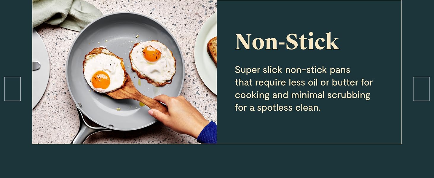 NATURALLY NON-STICK: Our super slick non-stick pots and pans require less oil or butter for cooking and minimal scrubbing for a spotless clean, giving you a healthier and easy at home culinary experience.