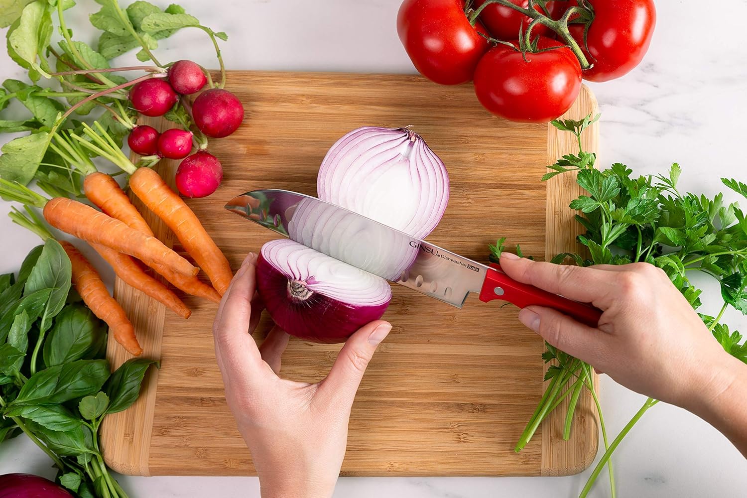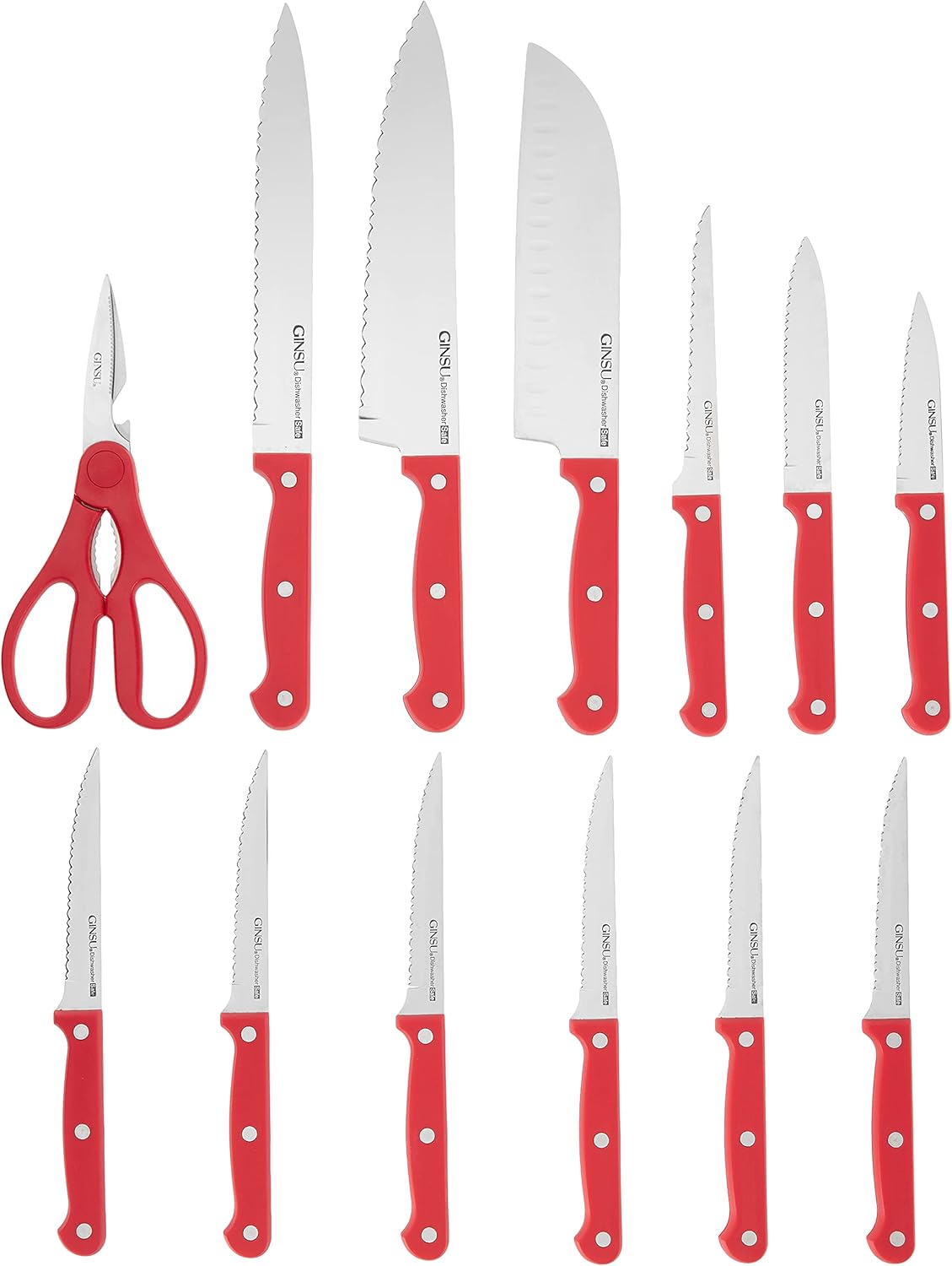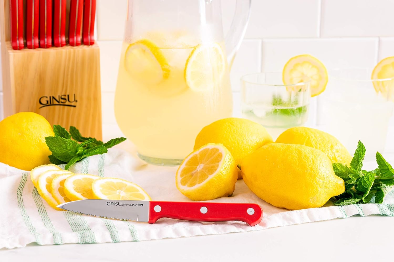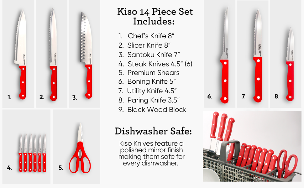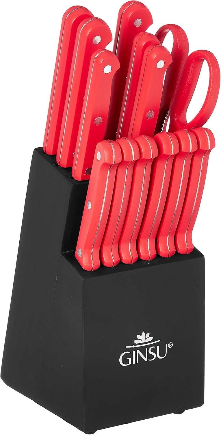 Modern Design: Ginsu Kiso??s colorful handles will add the perfect pop of color on your countertop or dinner table, and the sleek wood block is an easy way to keep your knife set organized and looking sharp. The overall elegance of this set will look perfect in your home!