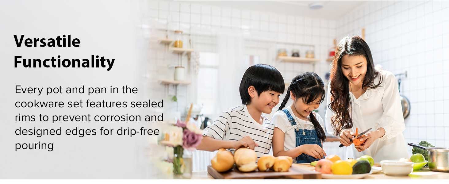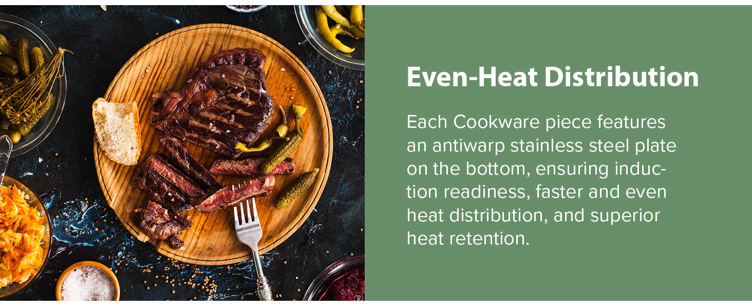 INDUCTION READY & EVEN HEAT DISTRIBUTION – Every cookware is bonded and reinforced with anti-warp SS plate on the bottom to make it induction ready. This bonding delivers fast, even heat distribution, and superior heat retention at any temperature.