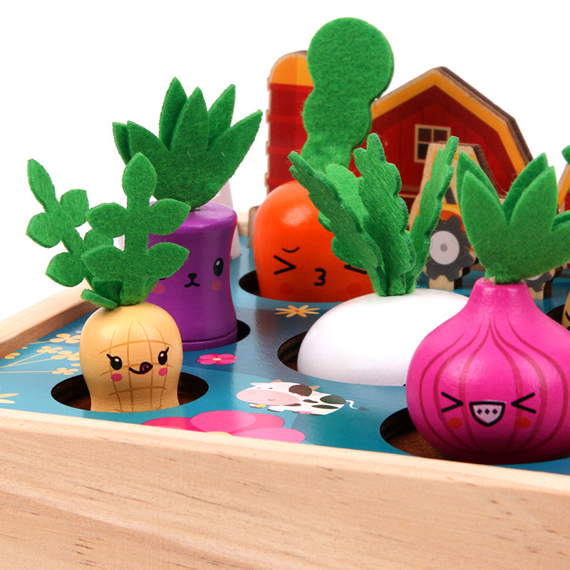 Wooden Happy Farm Radish Pull Toy ,This unique children’s educational simulation toy helps with vegetable cognition as kids play at home.